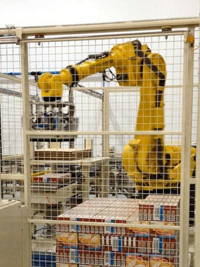 The Robots were programmed to stack pallet loads of Frozen product in pallet patterns designed to maximise numbers of cases per layer and layers per pallet.